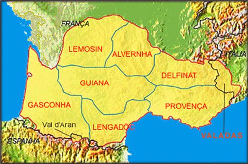 - Guascogna, dopo l'ordinanza di Villers-Cotterêts i paesi a sinistra della Loira, "dove si parla ancora l'antico provenzale" (da Dom Vaissette).