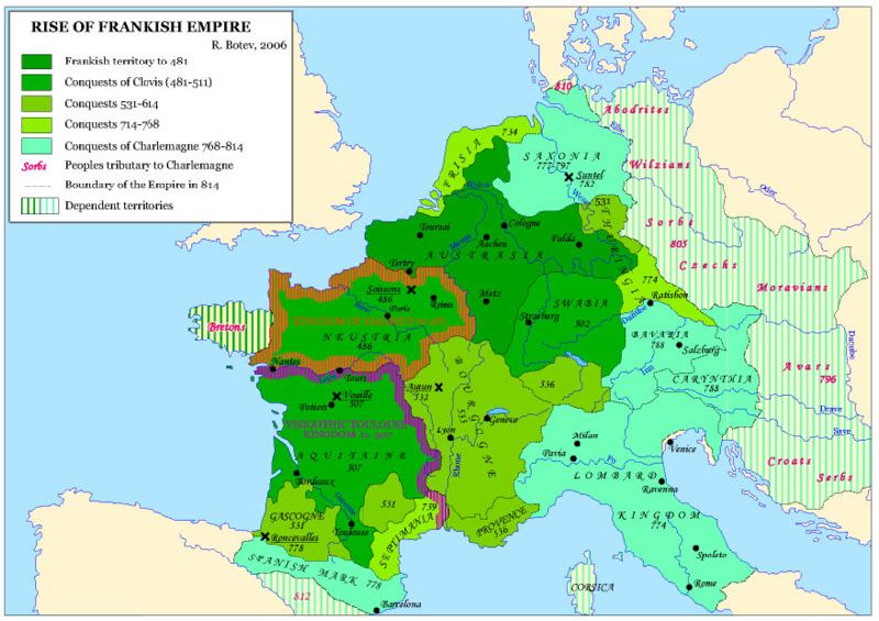 La loro avanzata fu però fermata da Carlo Martello, maestro di palazzo del re merovingio Childerico III, nella battaglia di Poitiers del 732.
